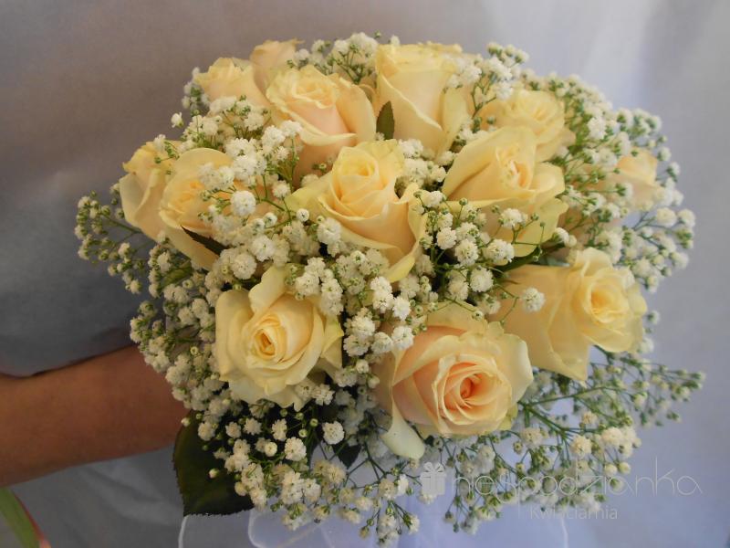 Wiązanka ślubna - Kremowa róża i gipsówka - WIĄZANKA ŚLUBNA