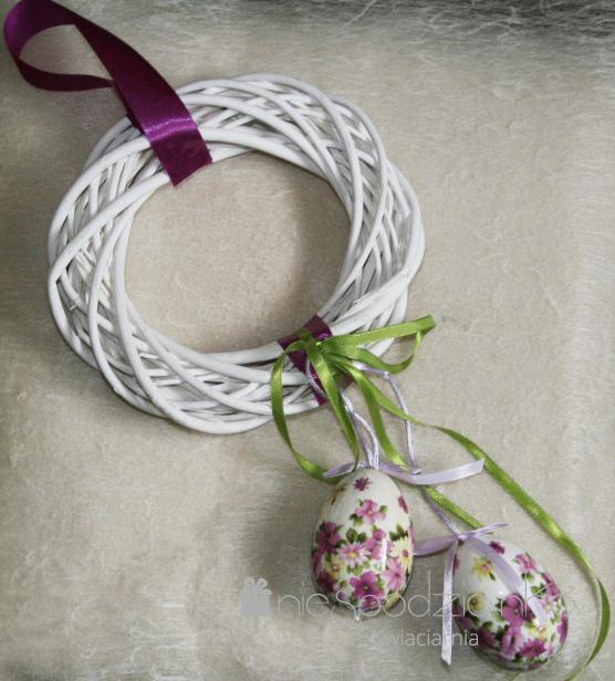 Białe koło z jajkami typu decoupage