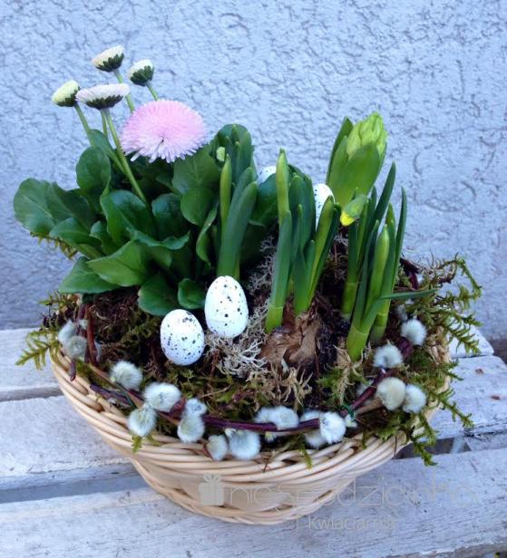 Kompozycja w wiklinowym koszyku mix.