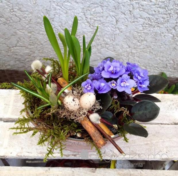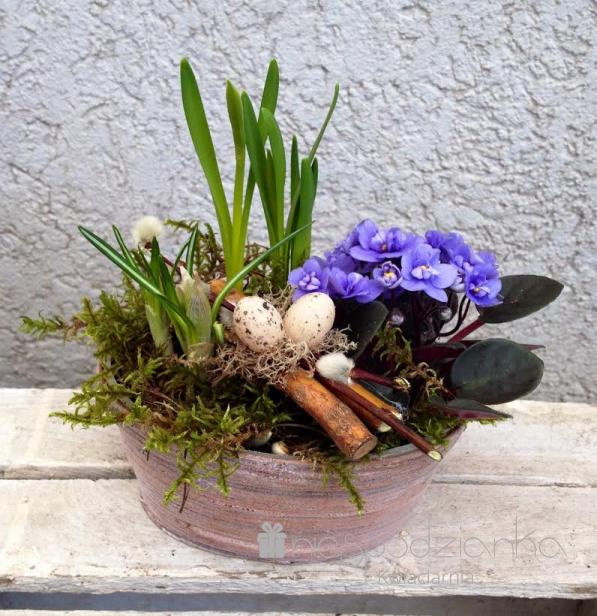 Koszyk z niebieskim fiołkiem.